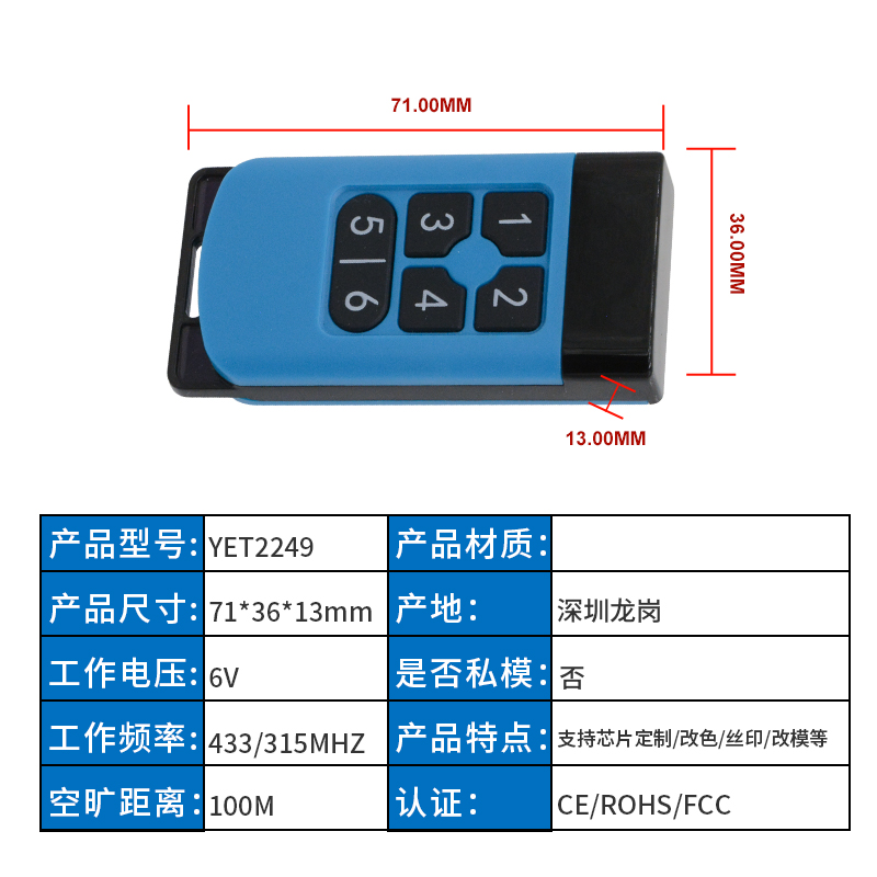 * 表示必填订购:YET2249六键1527无线遥控器
